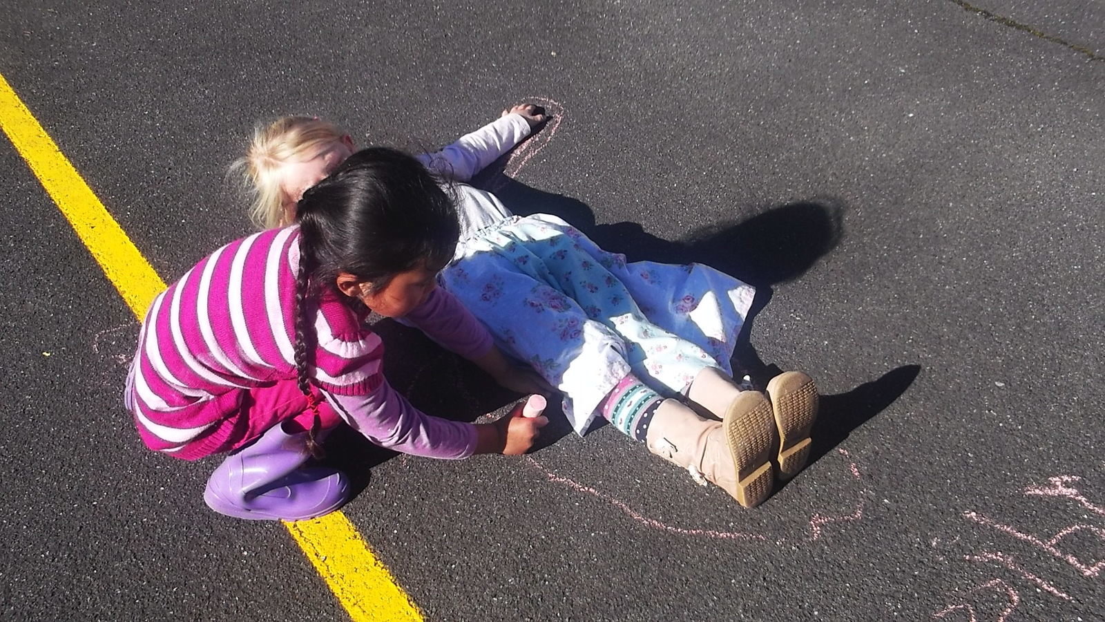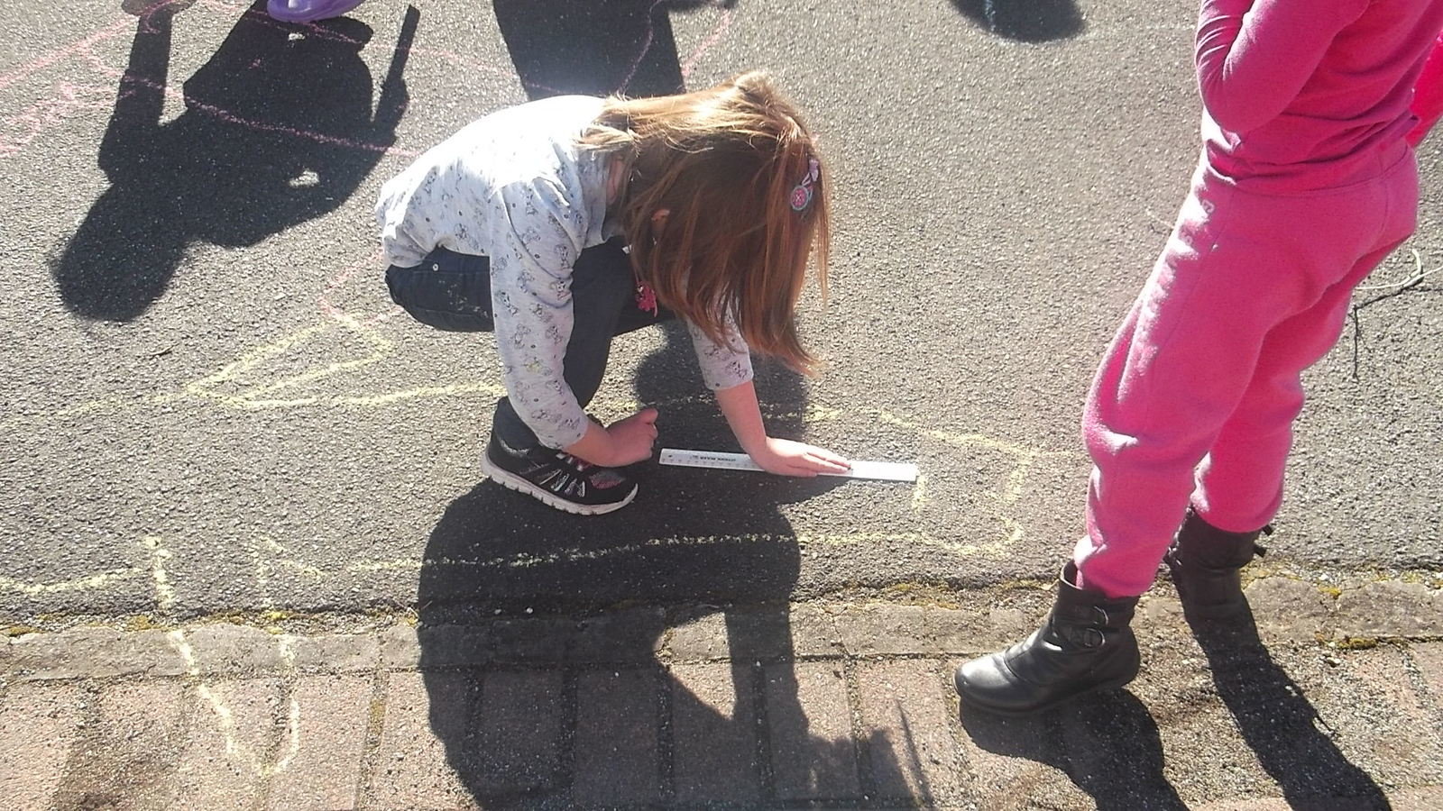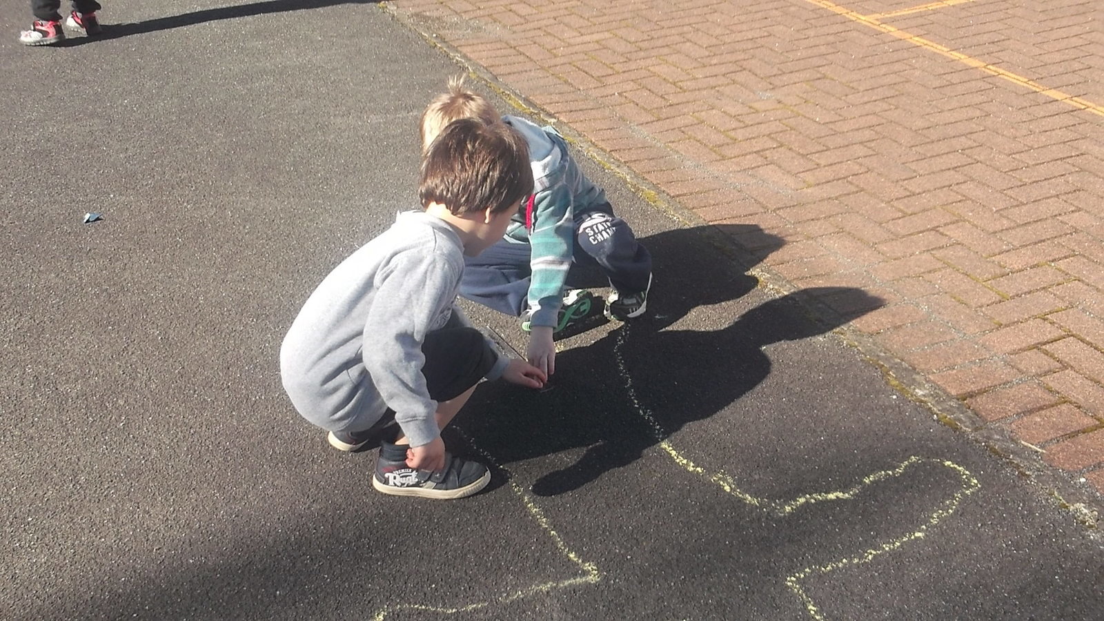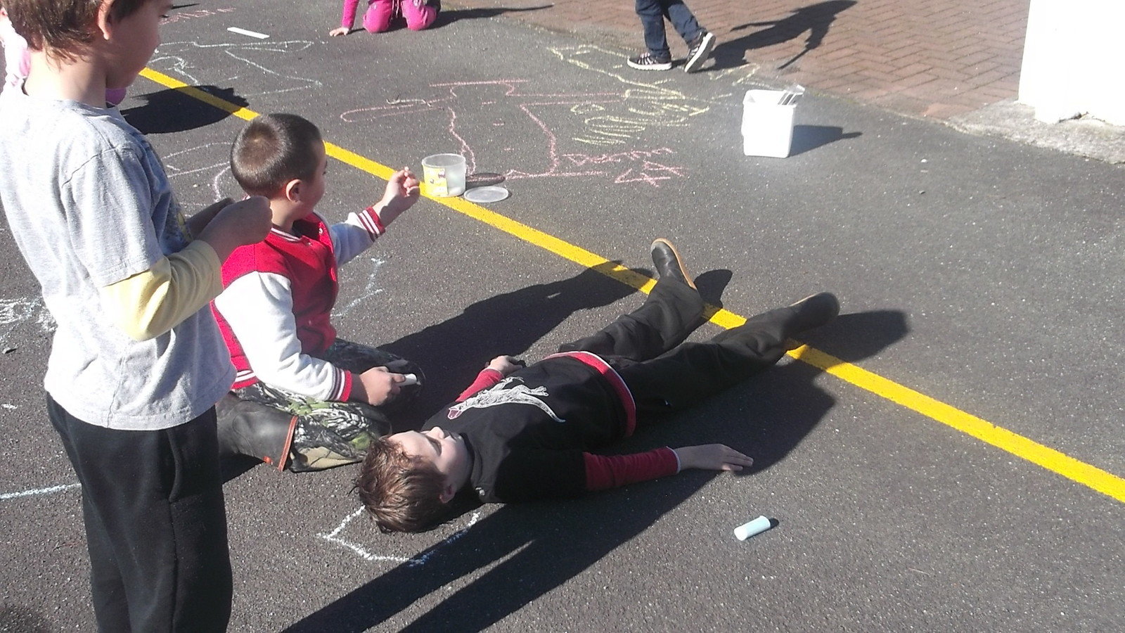In Maths we went outside and drew around our buddies, then using our 30cm rulers as our measuring unit we measured our outlines to see how many rulers tall we were - it was a sunny warm day in Rerewhakaaitu that day
