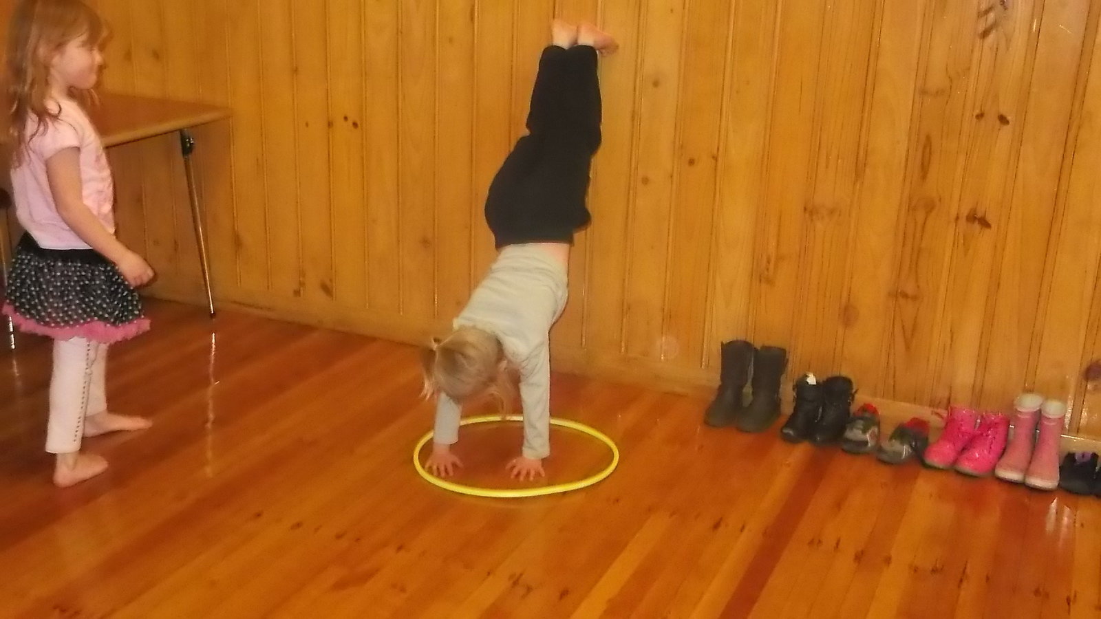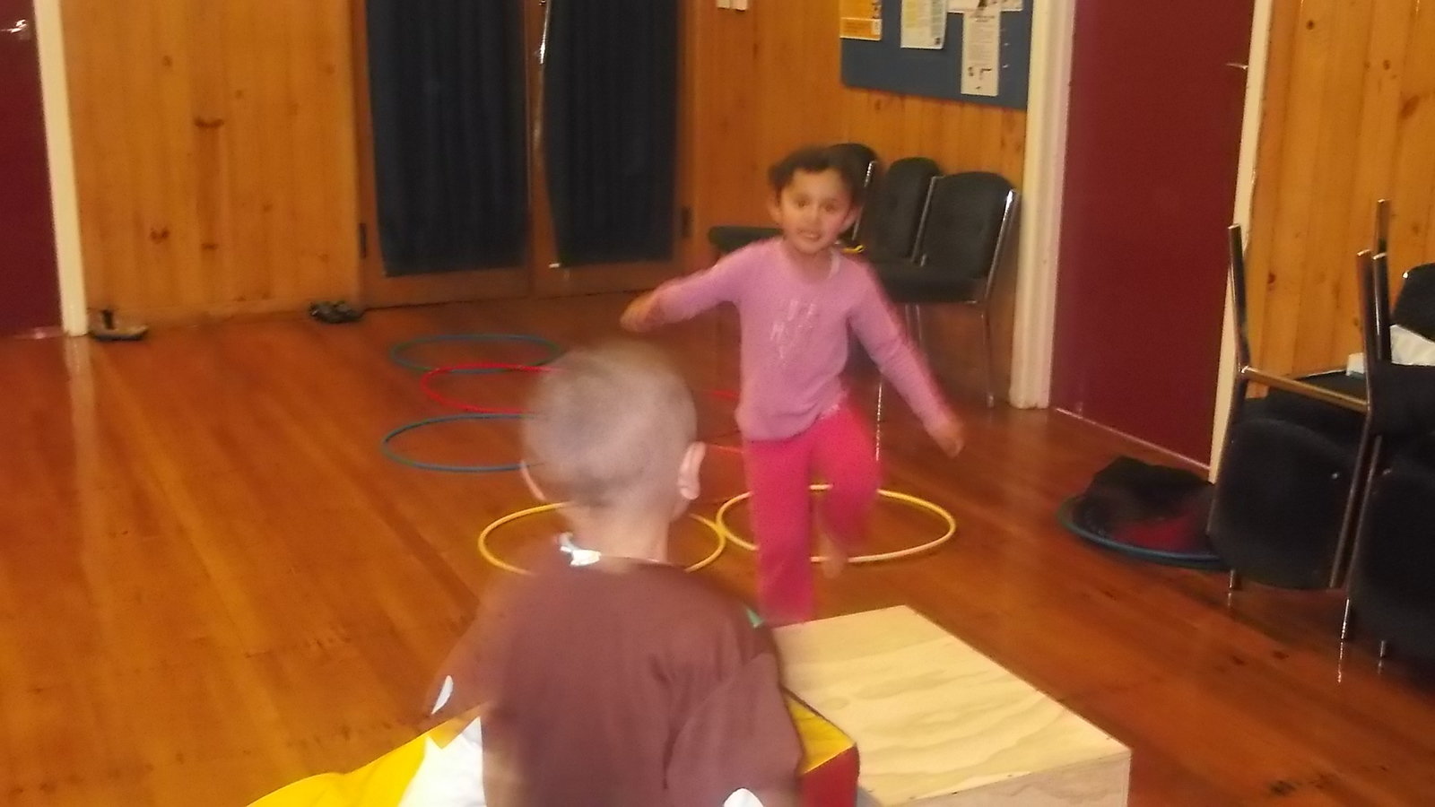 We go to Move It every Tuesday afternoon over in the hall. Monique takes us and we learn all sorts of gymnastics tricks. We do forward and backward rolls down a ramp, we jump on the little trampoline and do motorbike landings. We know how the do front supports and L shapes and straight shapes and side supports.