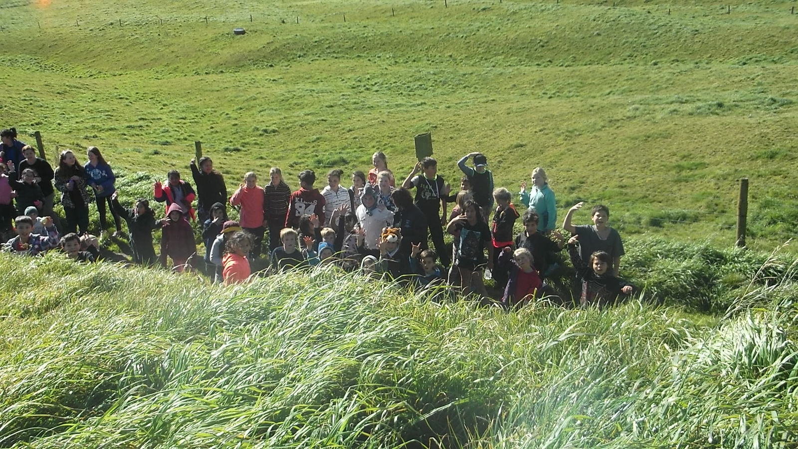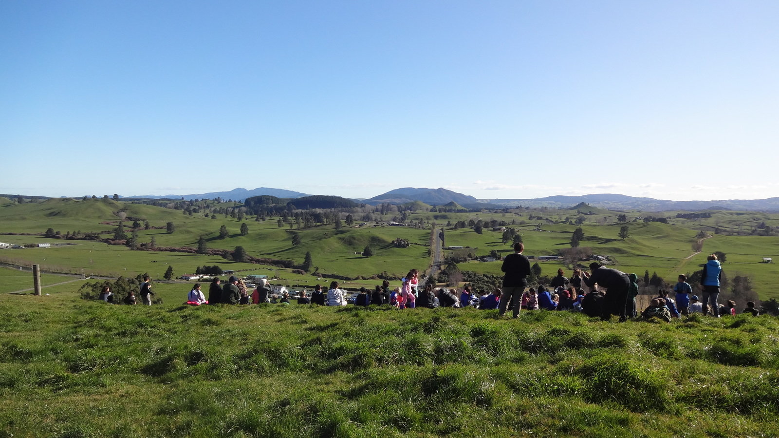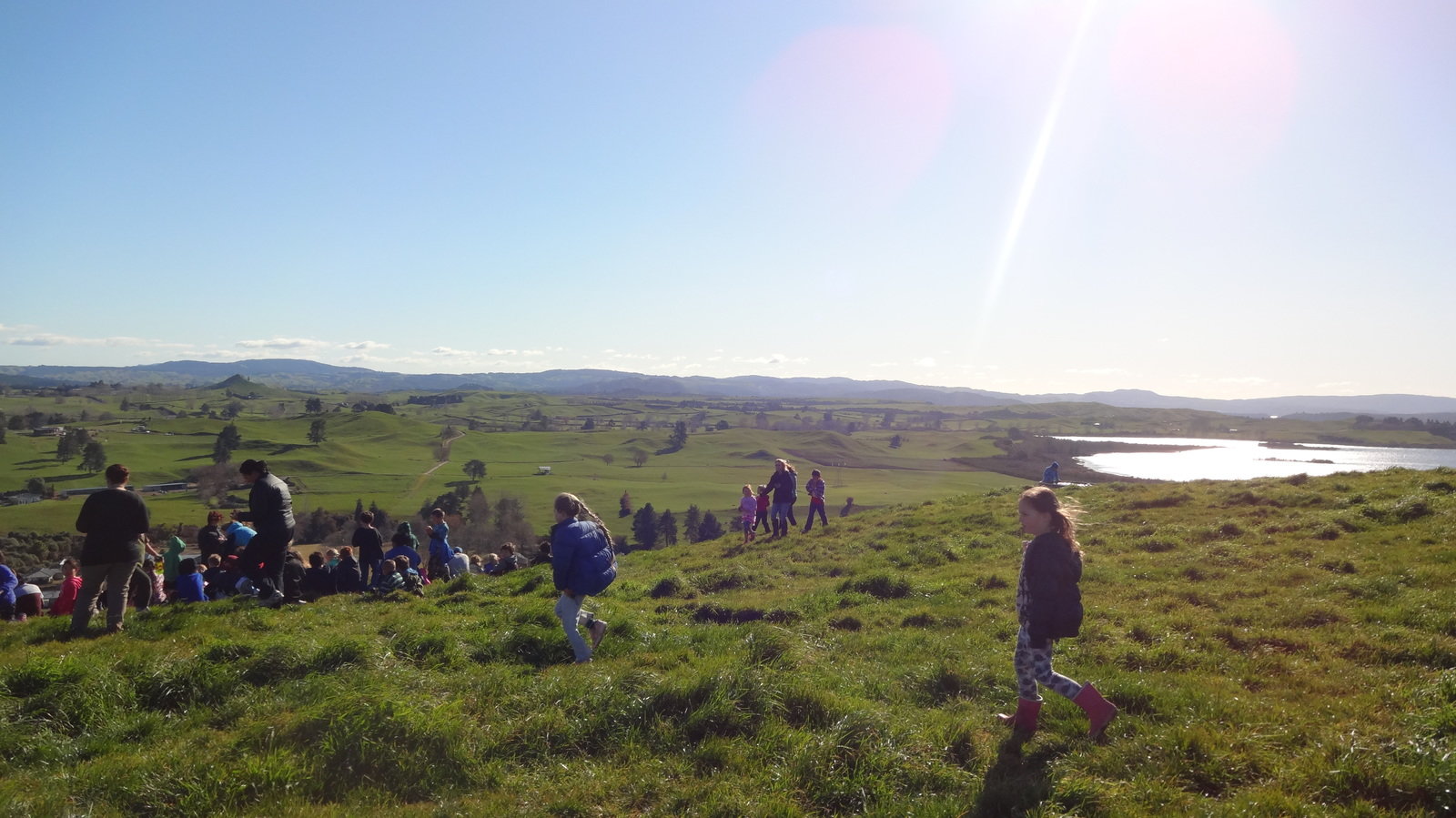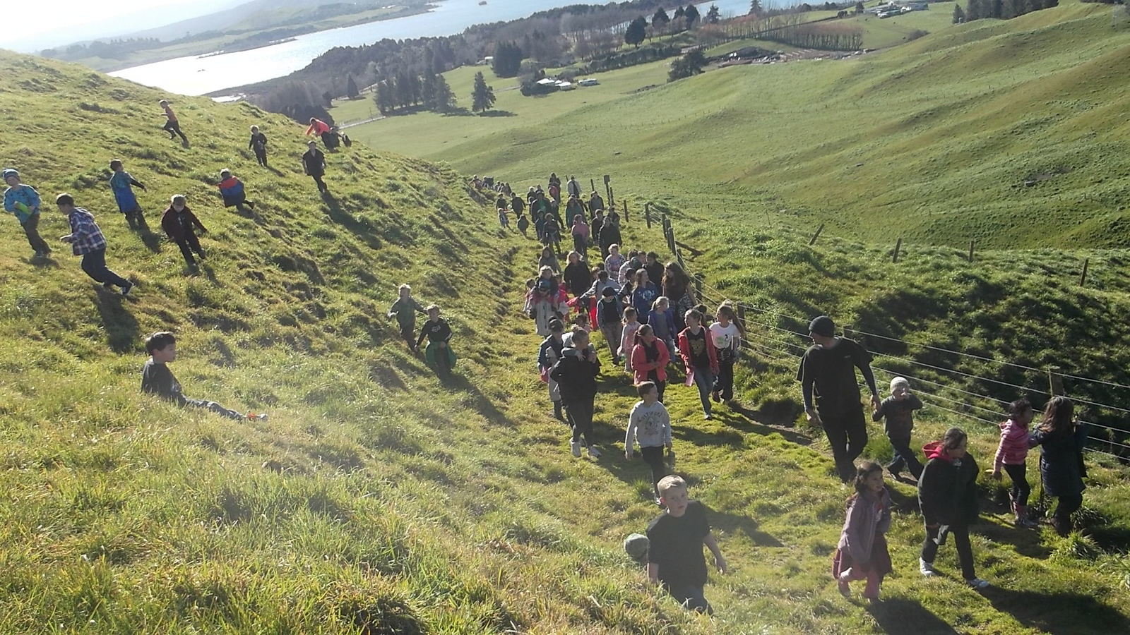 Today the whole school went for a walk up the hill opposite our school. We had been learning about the battle of the mountains - a Maori legend about the mountains in the central North Island and from the top of the hill we can see seven mountains on a clear day.