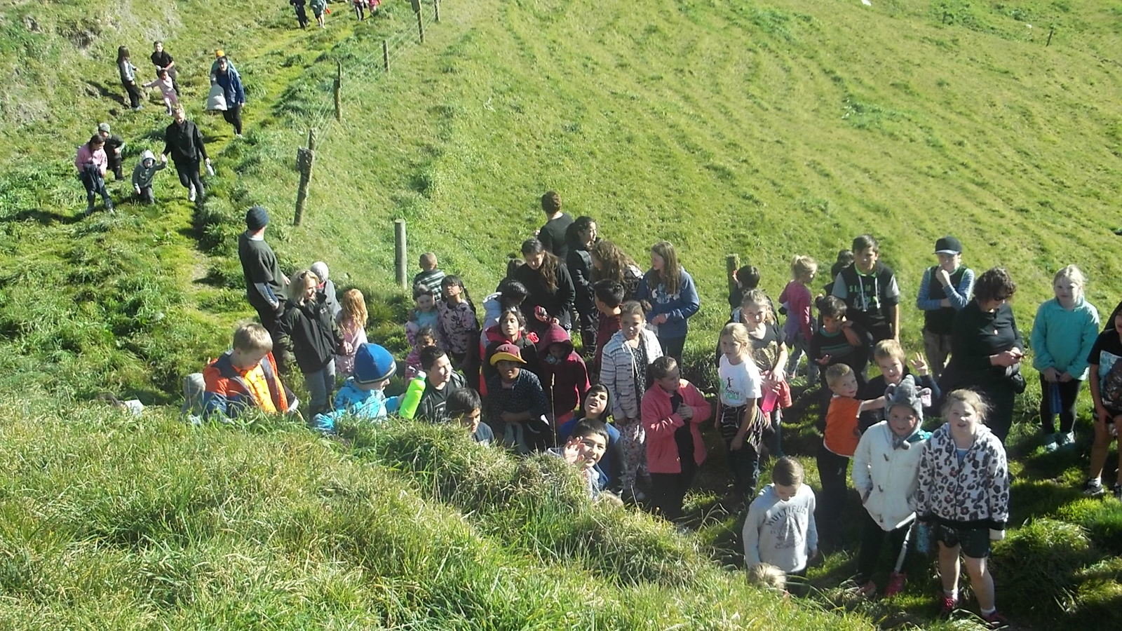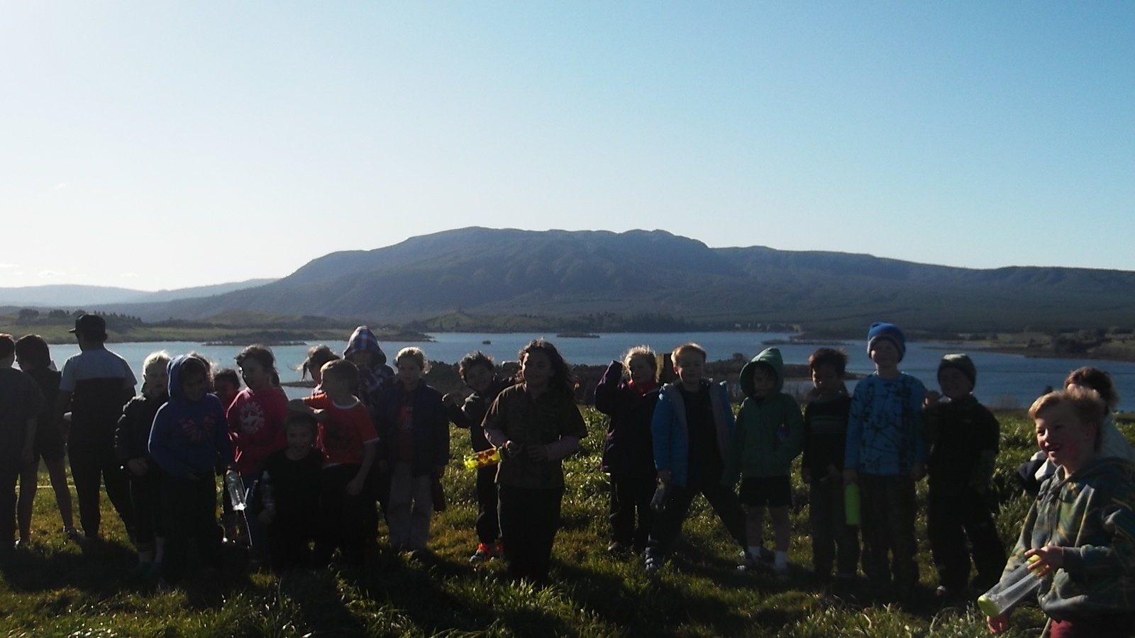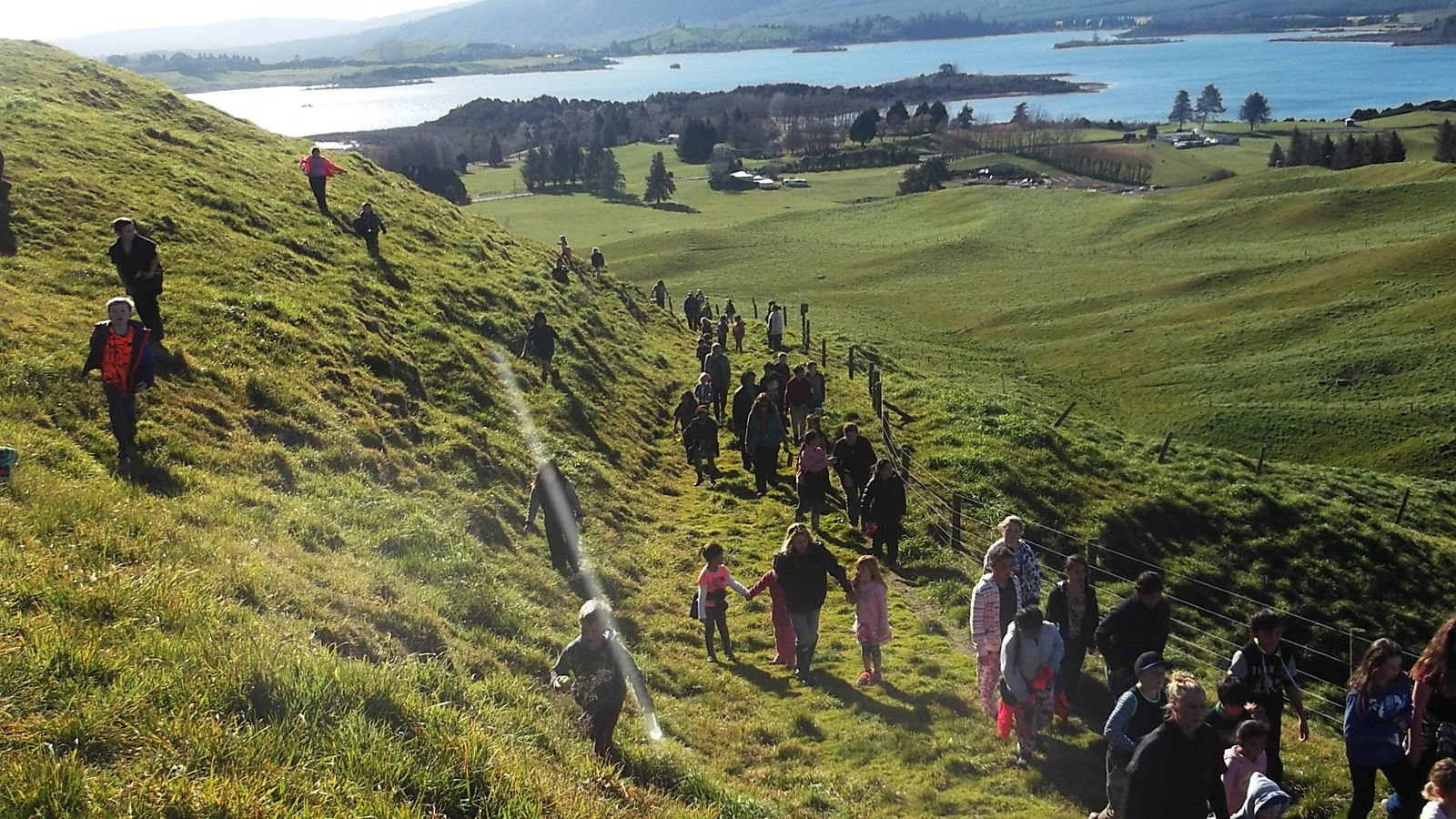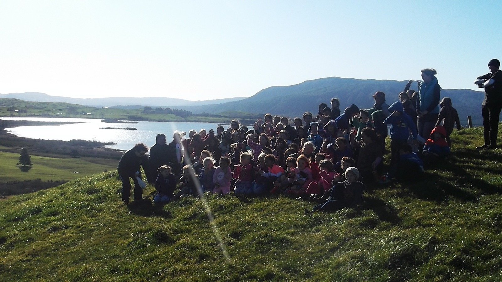 Today the whole school went for a walk up the hill opposite our school. We had been learning about the battle of the mountains - a Maori legend about the mountains in the central North Island and from the top of the hill we can see seven mountains on a clear day.