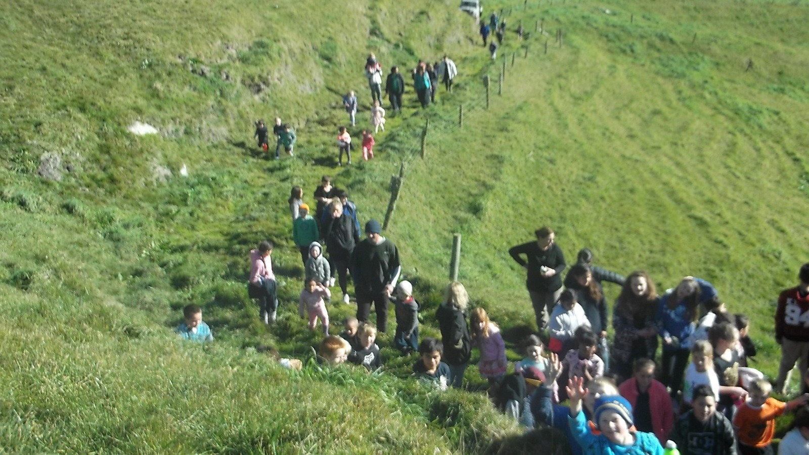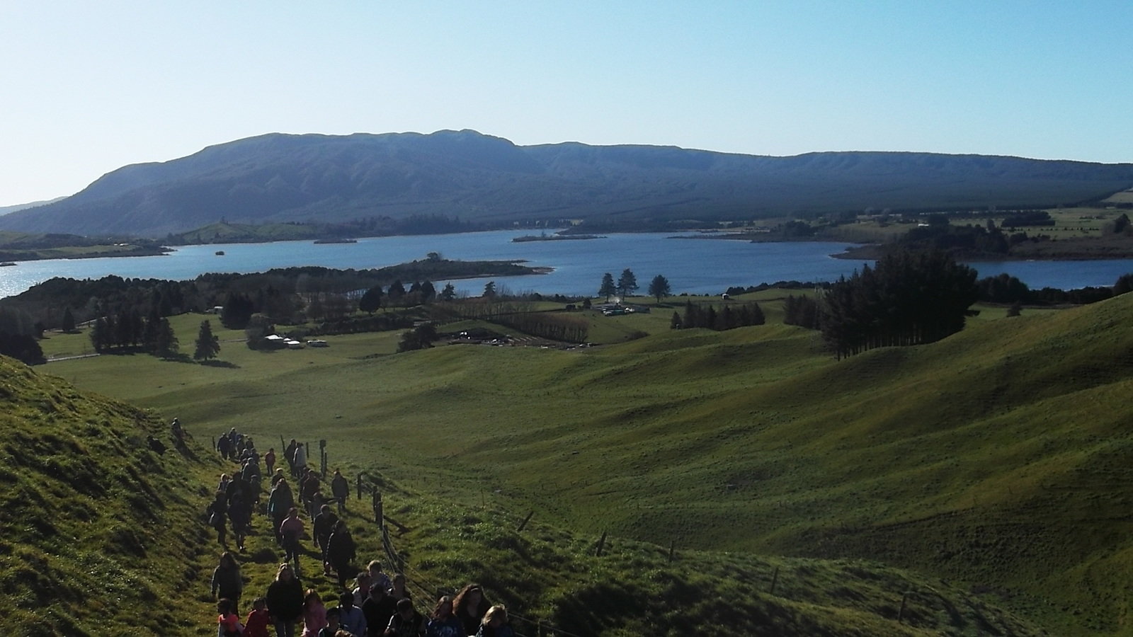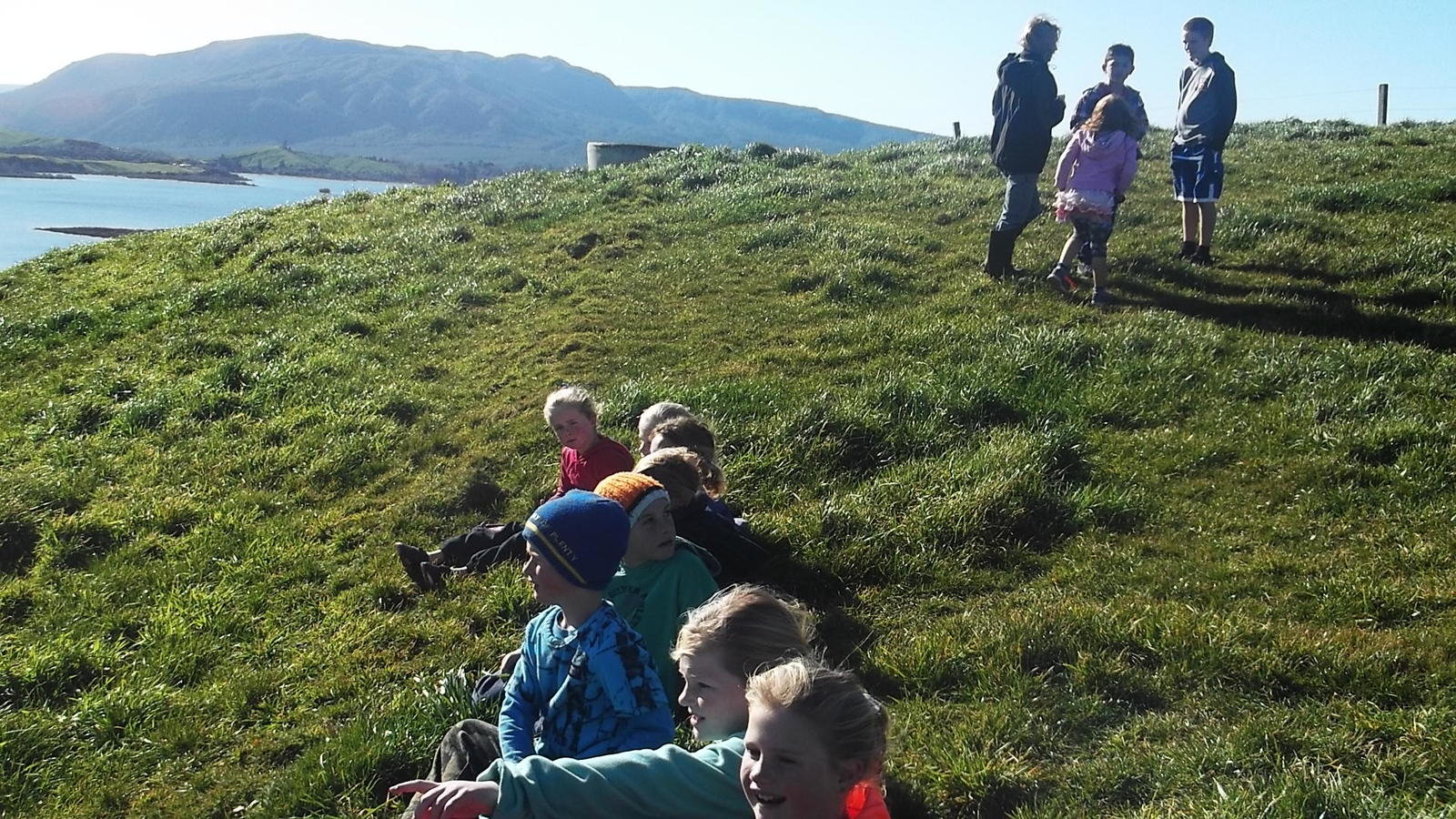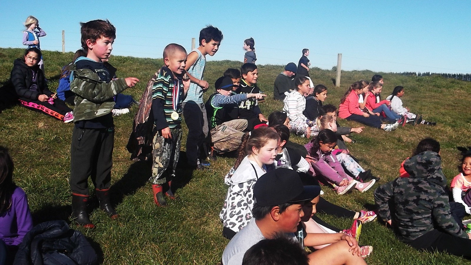 Today the whole school went for a walk up the hill opposite our school. We had been learning about the battle of the mountains - a Maori legend about the mountains in the central North Island and from the top of the hill we can see seven mountains on a clear day.