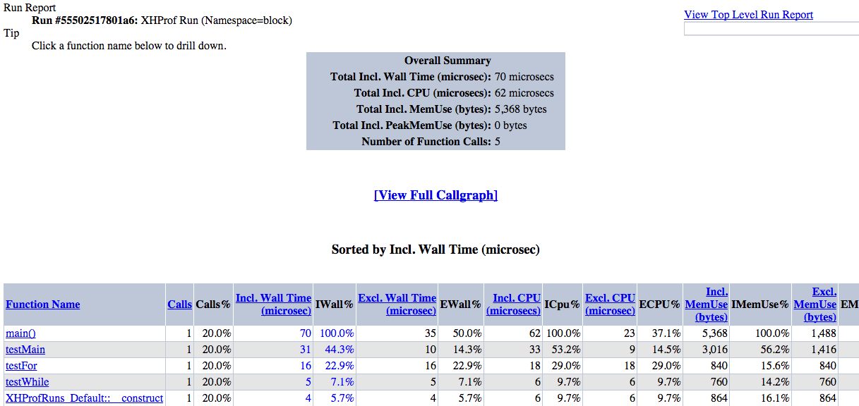 Profiling using XHProf