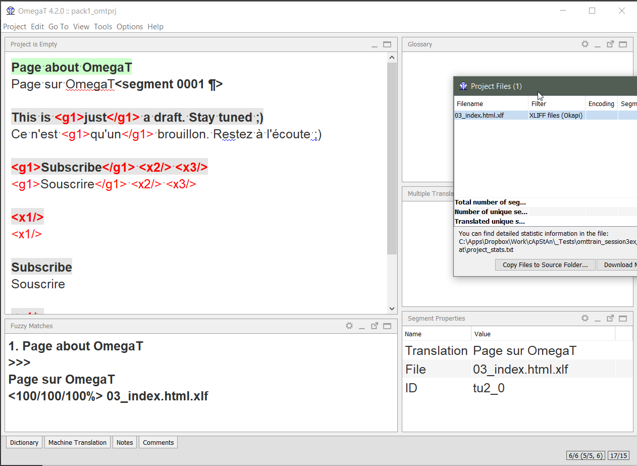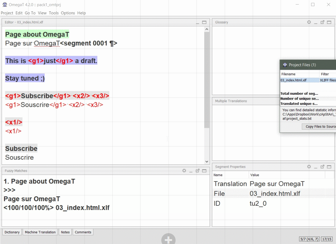 This presentation was meant mostly to provide the essential background information you need to understand about how OmegaT interacts with XLIFF files.