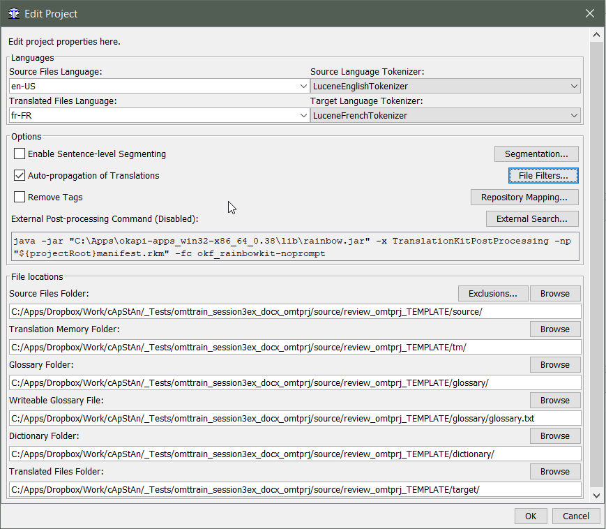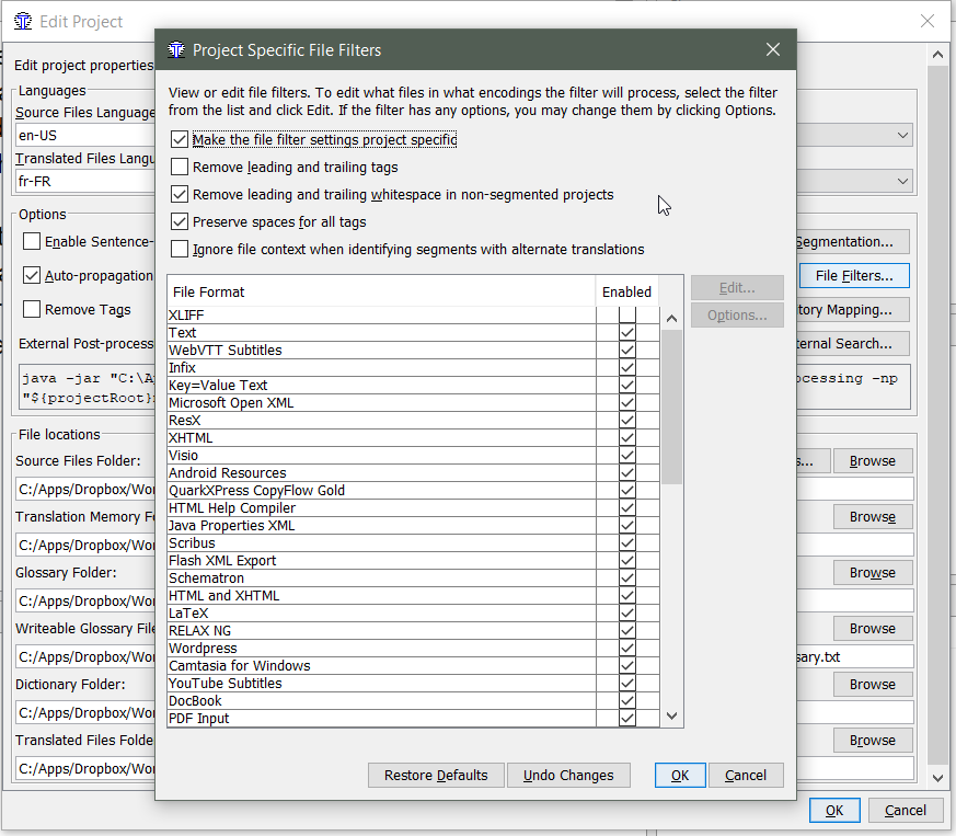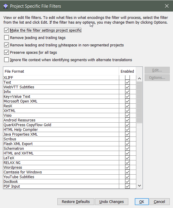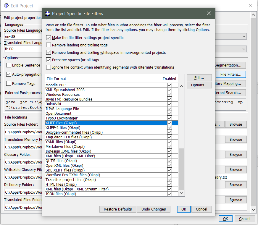 - Enabled when the default OmegaT XLIFF filter is not enabled