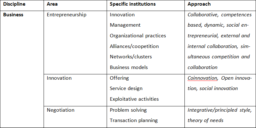 1. Describing the context, explaining the multidisciplinary connections, integrating the theory (sociopolitical, organizational, managerial and legal aspects), proposing a common ground around collaborative competences