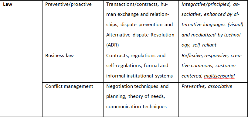 Applications of perspective: contractual experiences in dispute prevention and conflict management and/or a business model for legal services by design (start ups on law services).