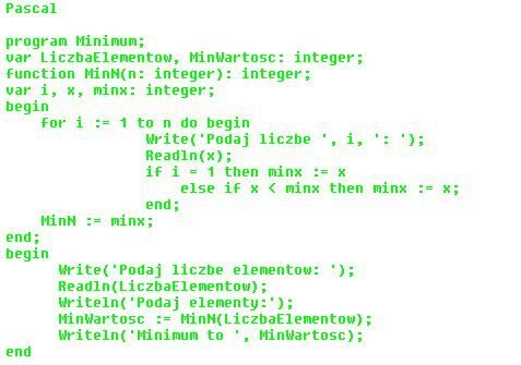 Pascal MinWartosc := MinN(LiczbaElementow);