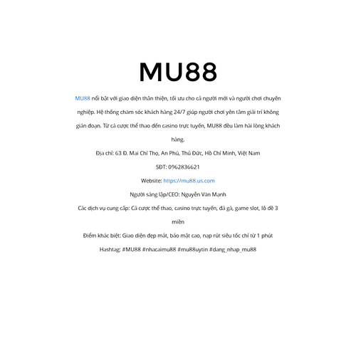 MU88 - Nhà cái cá cược hàng đầu Việt Nam, chuyên cung cấp cá cược thể thao, casino online uy tín với giao diện hiện đại, bảo mật cao. https://mu88.us.com