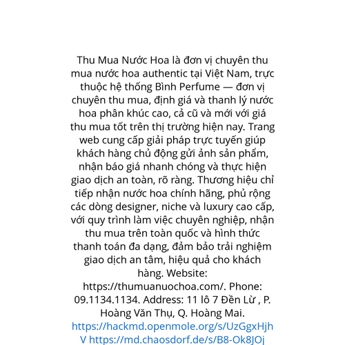 Website: https://thumuanuochoa.com/https://thumuanuochoa.com/ Thu Mua Nước Hoa là thương hiệu dịch vụ thu mua nước hoa chính hãng tại Việt Nam, trực thuộc hệ thống Binh Perfume — đơn vị chuyên thu mua, định giá và thanh lý nước hoa cao cấp, cả cũ và mới với giá thu mua tốt t