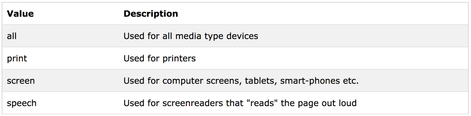 List of media queries :