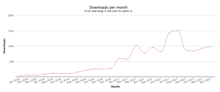 npm downloads of the “nativescript” package