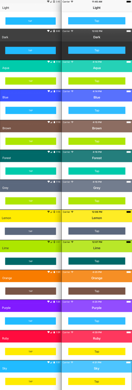Button, Label, TextField, TextView, SearchBar, Switch, Slider, Progress, ActivityIndicator, Image, ListView, HtmlView, WebView, TabView, SegmentedBar, DatePicker, TimePicker, ListPicker, Dialogs