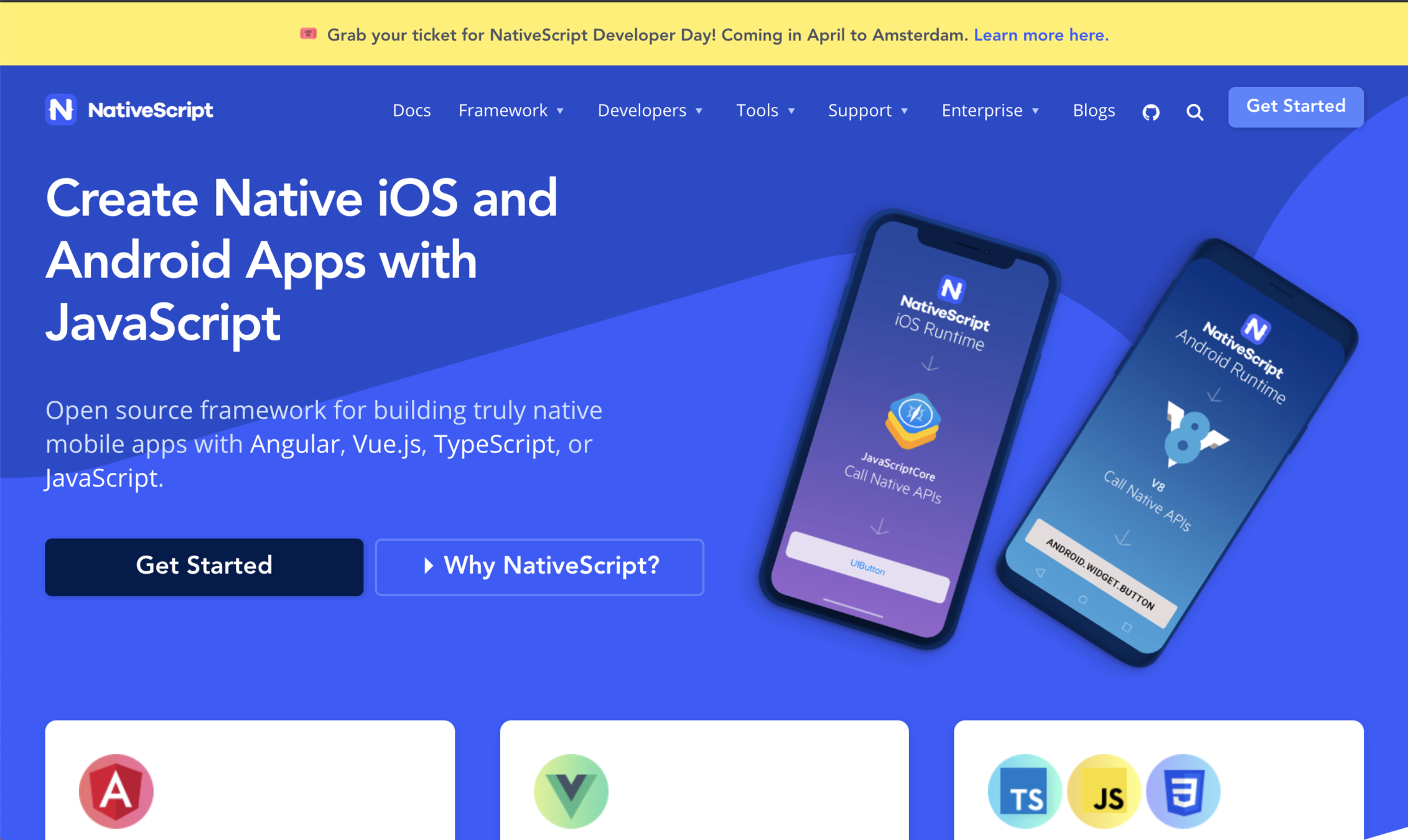 Ever wanted to develop Native mobile apps but couldn’t find the time to learn new languages? Or, you tried Hybrid app development but were not happy with the performance? NativeScript is here to offer you the best of Hybrid and Native development workflow. With NativeScript, you are already a Mobile app developer! You will get a development experience which is similar to the web, while still getting a Native mobile app as the end result. You read that right! a Native mobile app!, no web view, we promise Say bye bye to Hybrid apps, and Hello to NativeScript, because building cross platform mobile apps is simpler using NativeScript. Get to market upto 5x faster than native approach, with no compromise to performance. Not convinced yet? You can aim for Web as well thanks to code sharing available with NativeScript. Let’s explore the world of JavaScript driven Native Mobile with NativeScript!