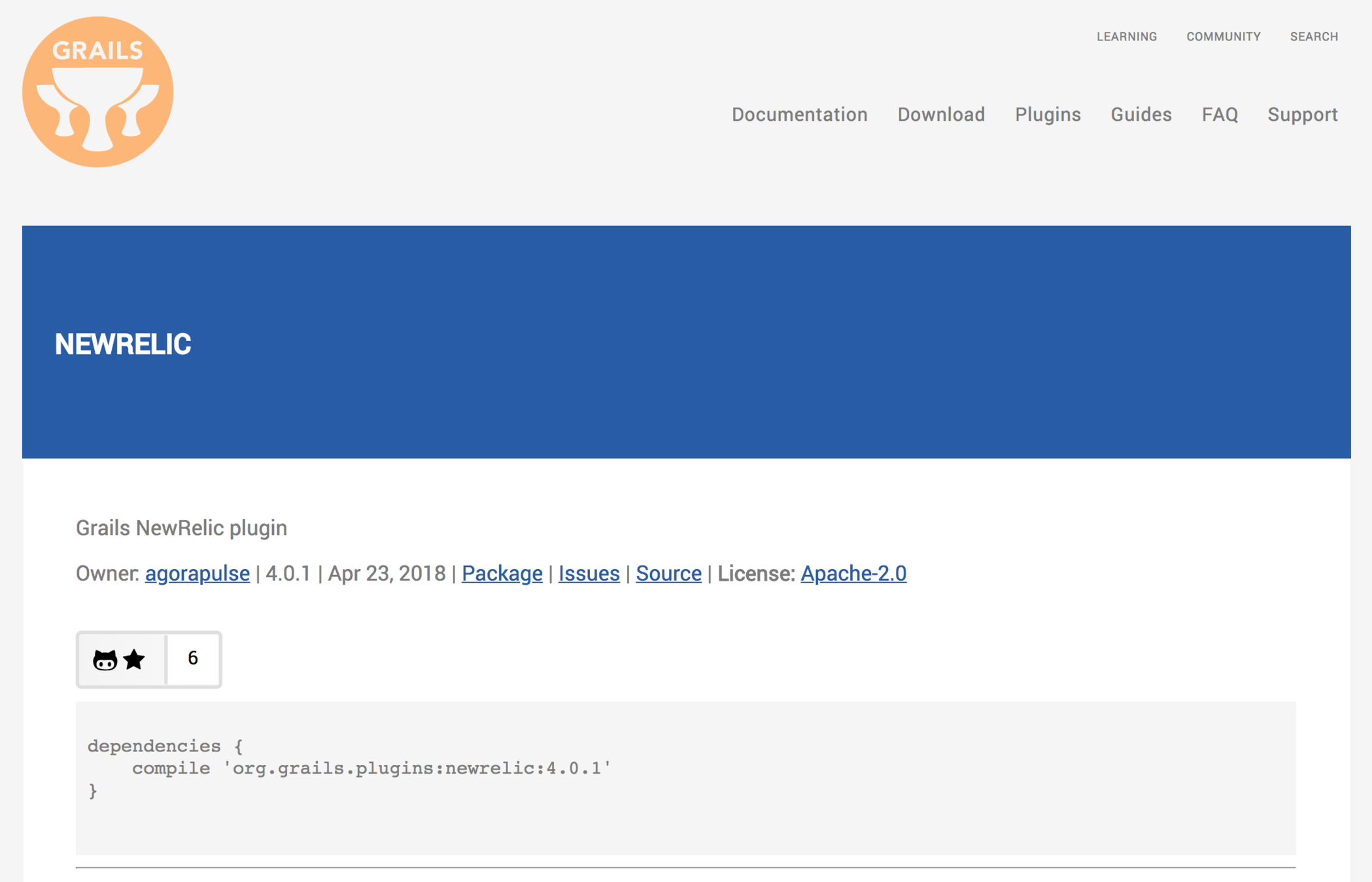 compile 'org.grails.plugins:newrelic:4.0.1'