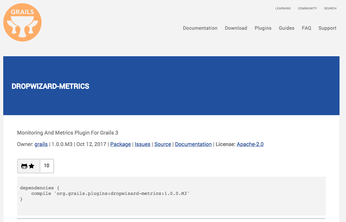 compile 'org.grails.plugins:dropwizard-metrics:1.0.0.M3'