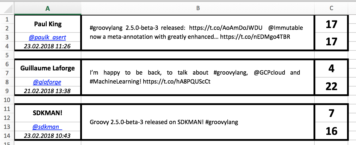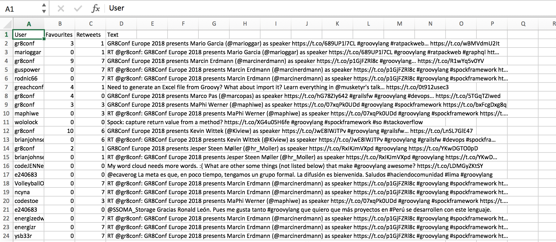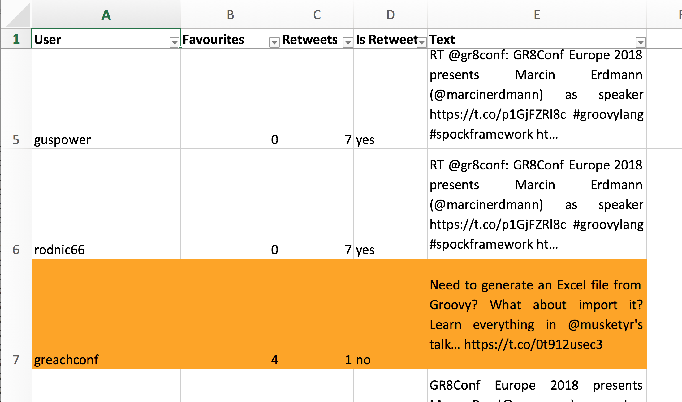 ['User', 'Favourites', 'Retweets','Text'].eachWithIndex { header, i ->