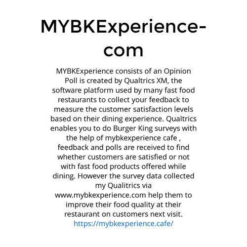 MYBKExperience consists of an Opinion Poll is created by Qualtrics XM, the software platform used by many fast food restaurants to collect your feedback to measure the customer satisfaction levels based on their dining experience.