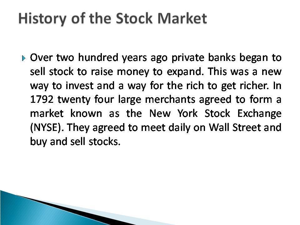 The stock market is an everyday term used to describe a place where stock in companies is bought and sold.