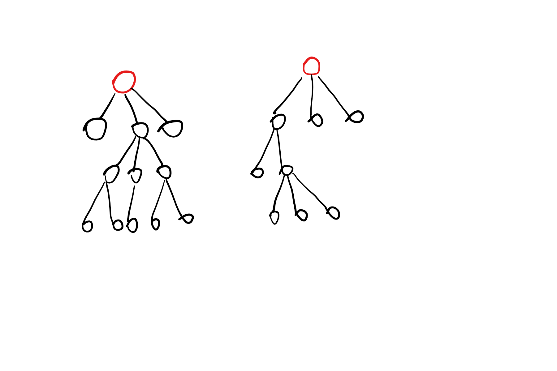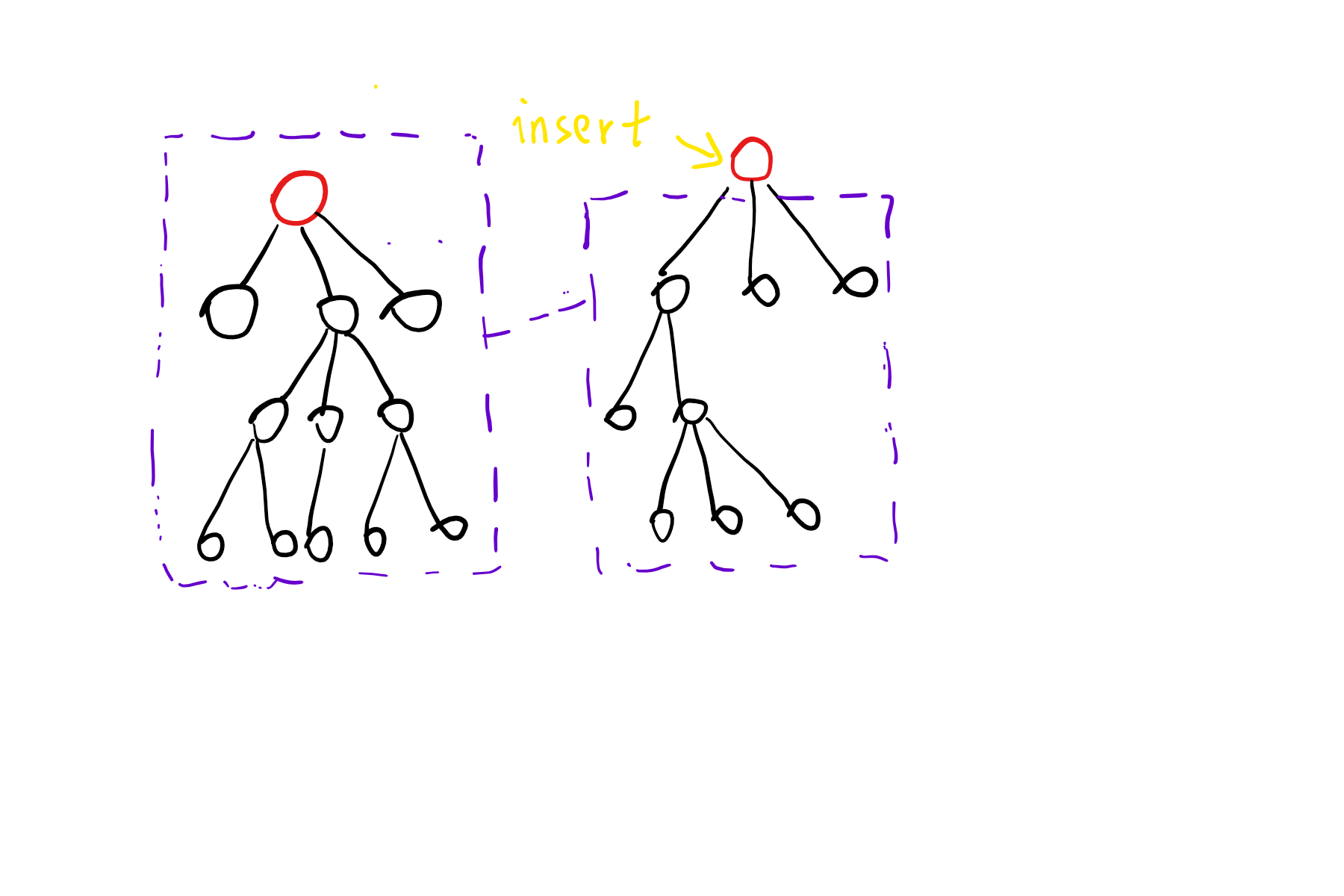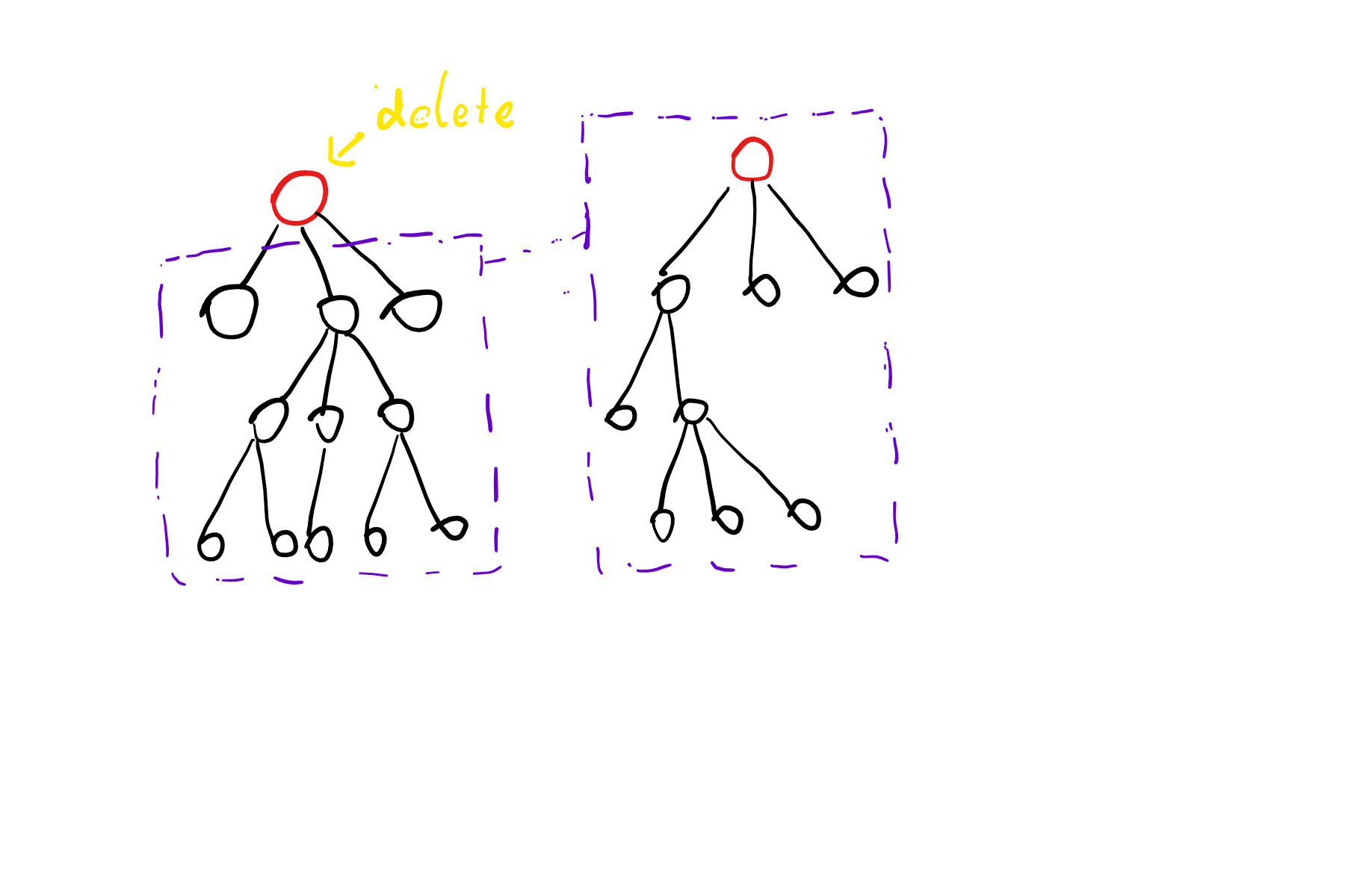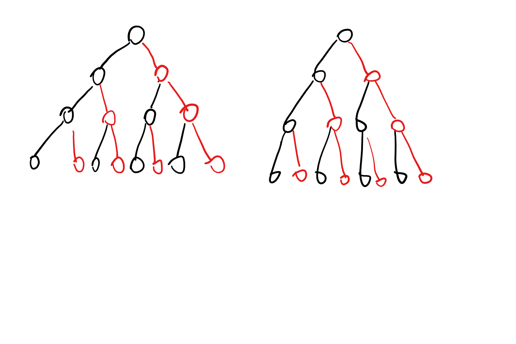 Time: considering a balanced tree, the sum of sizes of red substrees are , so the total time is reduced to