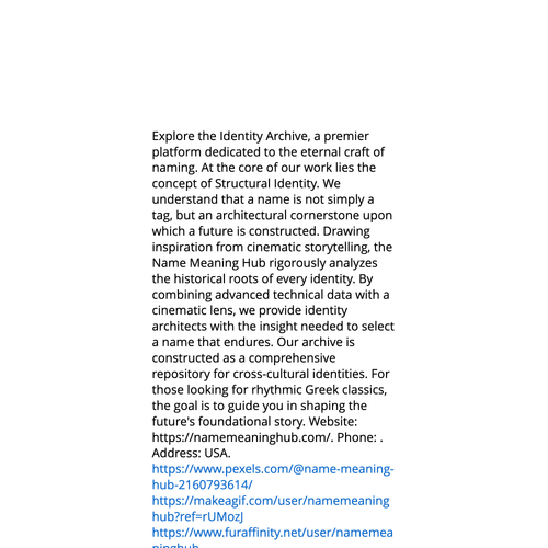Website: https://namemeaninghub.com/https://namemeaninghub.com/ Explore the Identity Archive, a premier platform dedicated to the eternal craft of naming. At the core of our work lies the concept of Structural Identity. We understand that a name is not simply a tag, but an ar