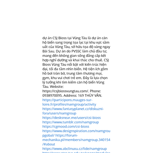 Website: https://csjbiossvungtau.com/https://csjbiossvungtau.com/ căn hộ nghỉ dưỡng CSJ Bioss Vũng Tàu là khu căn hộ – thương mại hiện đại tọa lạc tại thành phố du lịch Vũng Tàu, sở hữu mặt tiền Thùy Vân đối diện Bãi Sau. Dự án do Công ty Cổ phần Xây lắp Dầu khí Miền Nam phát