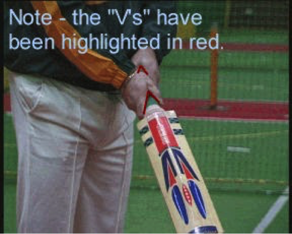 While gripping a bat formation of 'V' is very important. See the PICTURE on your right: