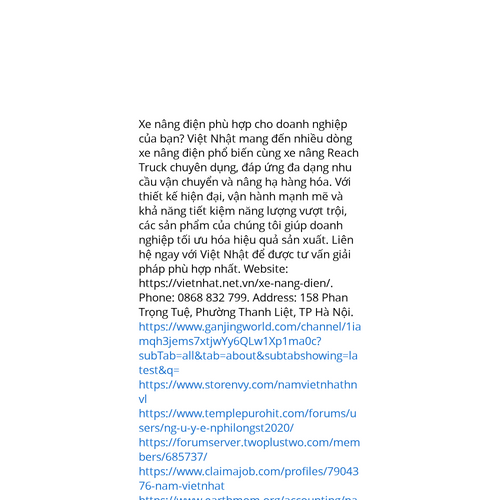 Website: https://vietnhat.net.vn/xe-nang-dien/https://vietnhat.net.vn/xe-nang-dien/ Xe nâng điện phù hợp cho doanh nghiệp của bạn? Việt Nhật mang đến nhiều dòng xe nâng điện phổ biến cùng xe nâng Reach Truck chuyên dụng, đáp ứng đa dạng nhu cầu vận chuyển và nâng hạ hàng hóa. Với thiết