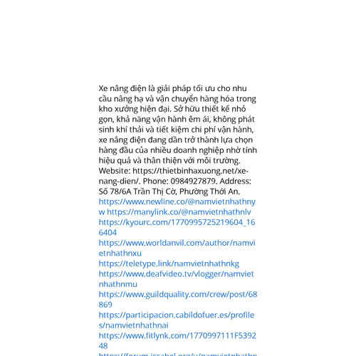 Website: https://thietbinhaxuong.net/xe-nang-dien/. Xe nâng điện là giải pháp tối ưu cho nhu cầu nâng hạ và vận chuyển hàng hóa trong kho xưởng hiện đại. Sở hữu thiết kế nhỏ gọn, khả năng vận hành êm ái, không phát sinh khí thải và tiết kiệm chi phí