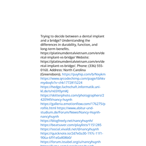 Website: https://platinumdentalvietnam.com/en/dental-implant-vs-bridge/https://platinumdentalvietnam.com/en/dental-implant-vs-bridge/ Trying to decide between a dental implant and a bridge? Understanding the differences in durability, function, and long-term benefits. https://platinumdentalvietnam.com/en/denta