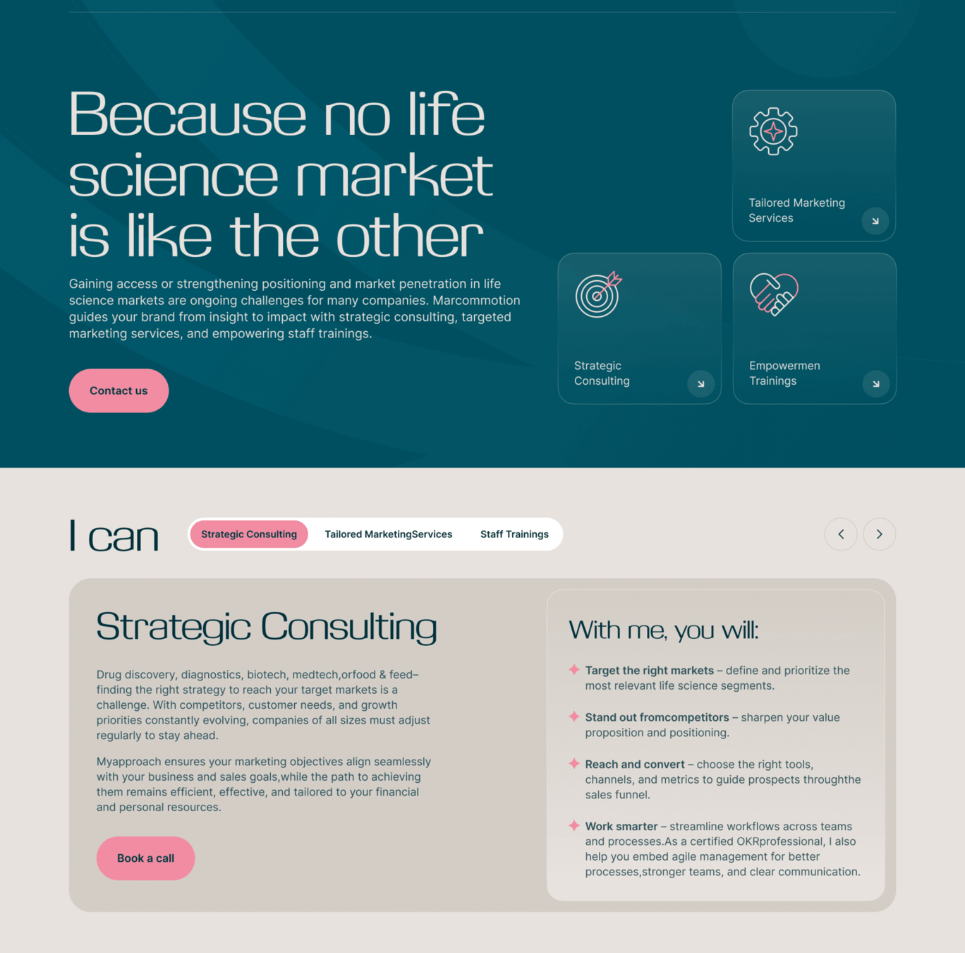 But we executed a complete visual overhaul to align Marcommotion's digital presence with their high-level consulting expertise in the life sciences.