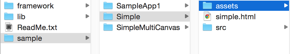 Simpleは一番簡単なサンプル、SimpleMultiCanvasは複数Canvasのサンプルです。