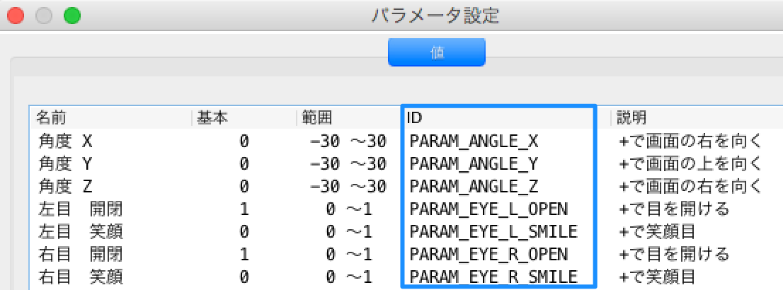 Cubism Modelerで設定したパラメータIDをプログラムから