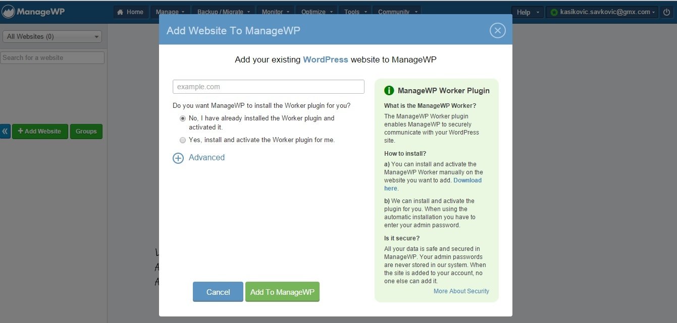 Dodati link koji vodi ka: http://managewp.com/user-guide/how-to-use-managewp/getting-started/manage-wordpress-sites-with-managewp