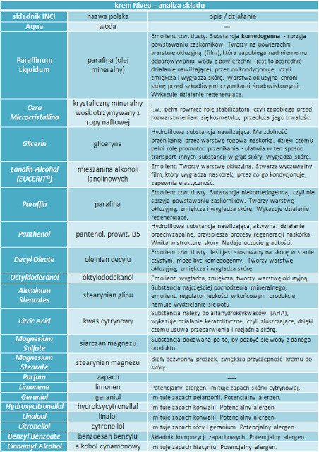 rodzaj składnika nazwa wg systemu INCI nazwa polska