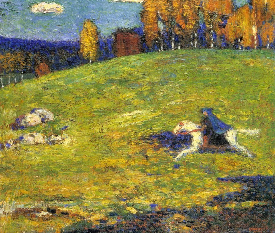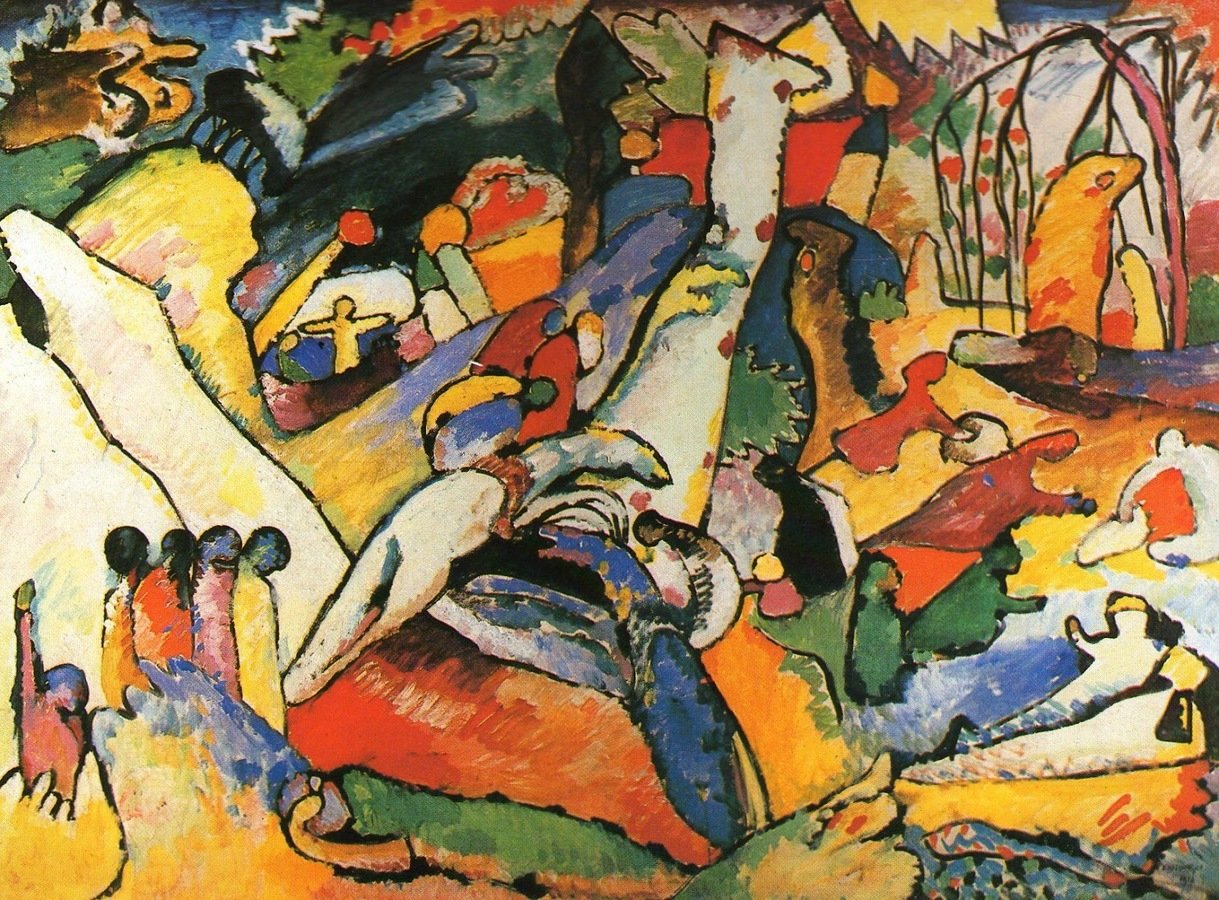 En sus primeras pinturas se observa los referentes del fauvismo, los colores se utilizan para expresar la experiencia de Kandisnki de la materia. Aún se observan figuras humanas y a la naturaleza