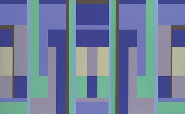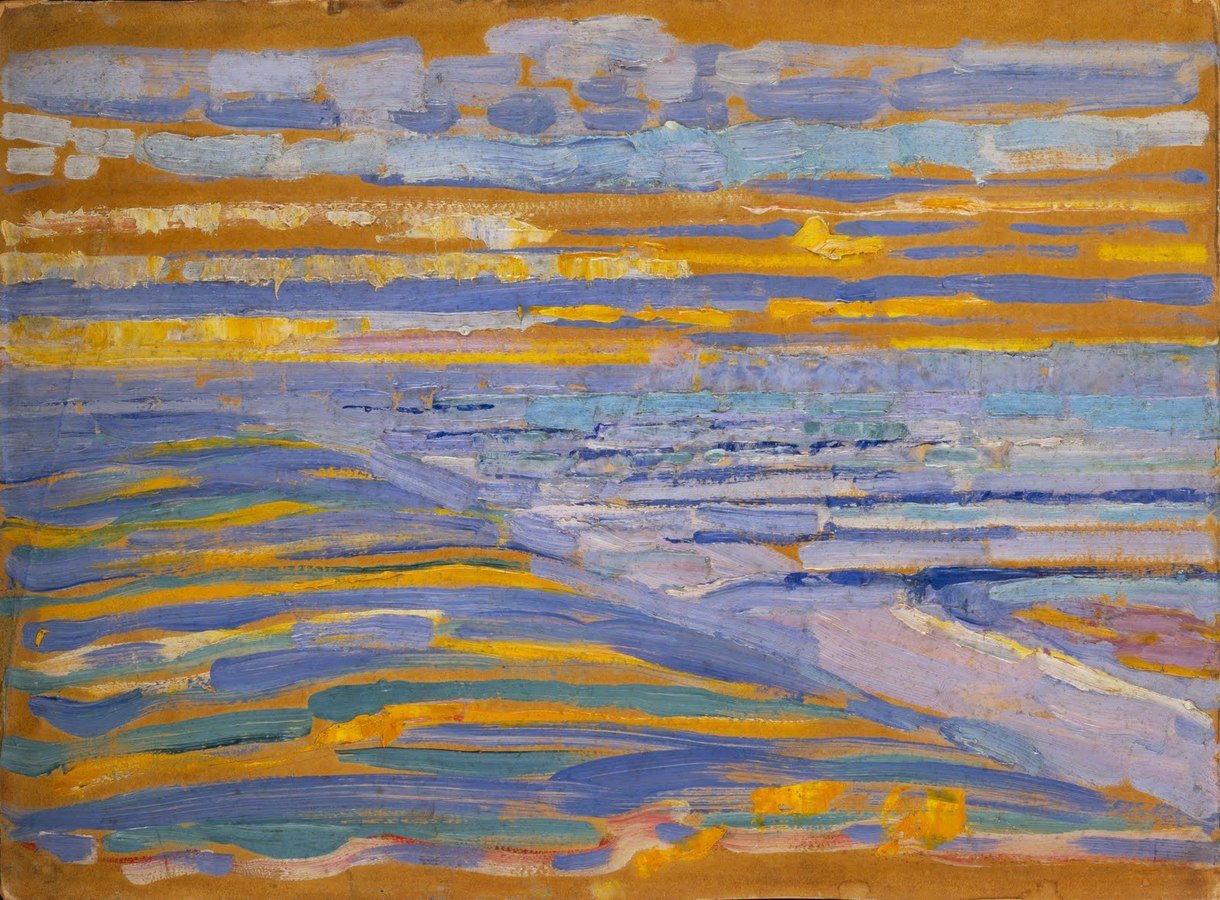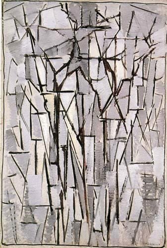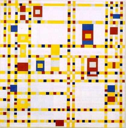 Intenta representar la retícula cósmica a través del color blanco, el cual atraviesan unas lineas negras, formando rectángulos donde se encuentran los colores primarios, considerado los colores elementales del universo.