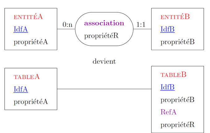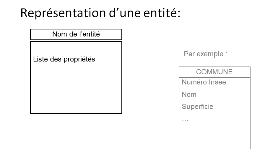 - L’identifiant d’une entité est constitué d’une ou plusieurs propriétés de l’entité telles qu’à chaque valeur de l’identifiant corresponde une et une seule valeur.