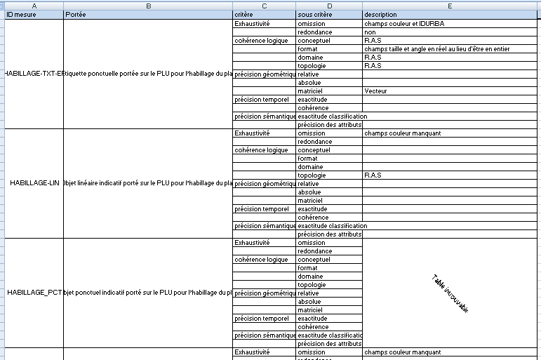 - Précision sémantique : Précision des attributs quantitatifs, exactitude des attributs non quantitatifs et de la classification des entités