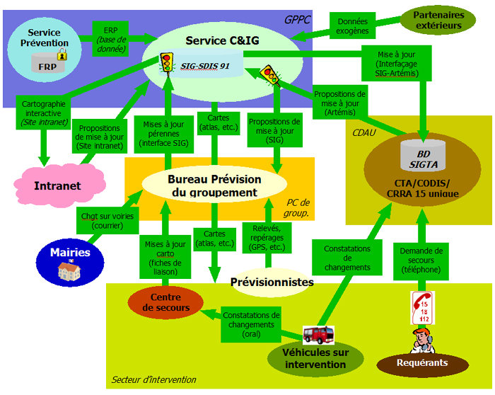 Exemple de diagramme des flux d'informations cartographiques SDIS 91 (F. Morellet)