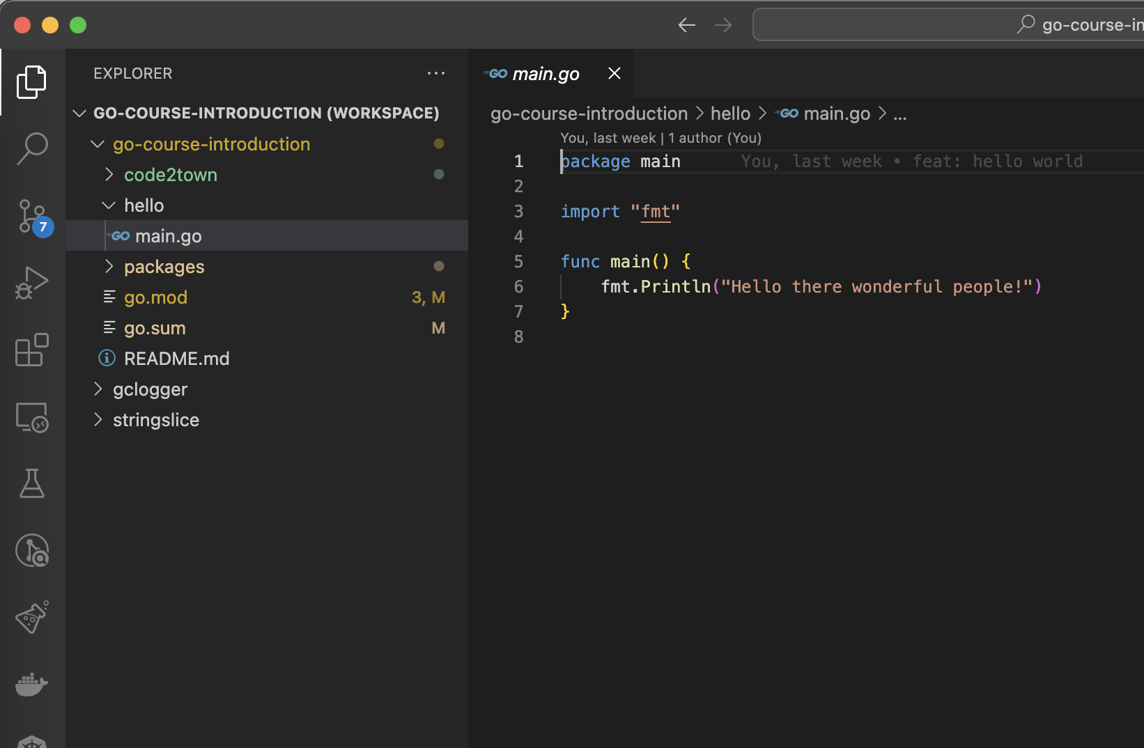 fmt.Println("Hello world from main!")