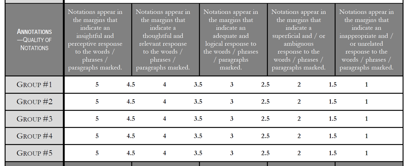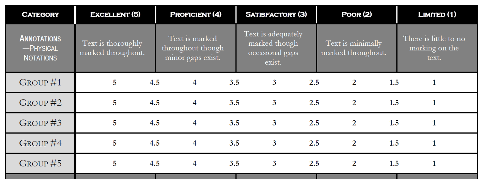 BE SURE TO DO THIS FOR ALL FOUR SECTIONS ON THE FRONT SIDE OF THE RUBRIC