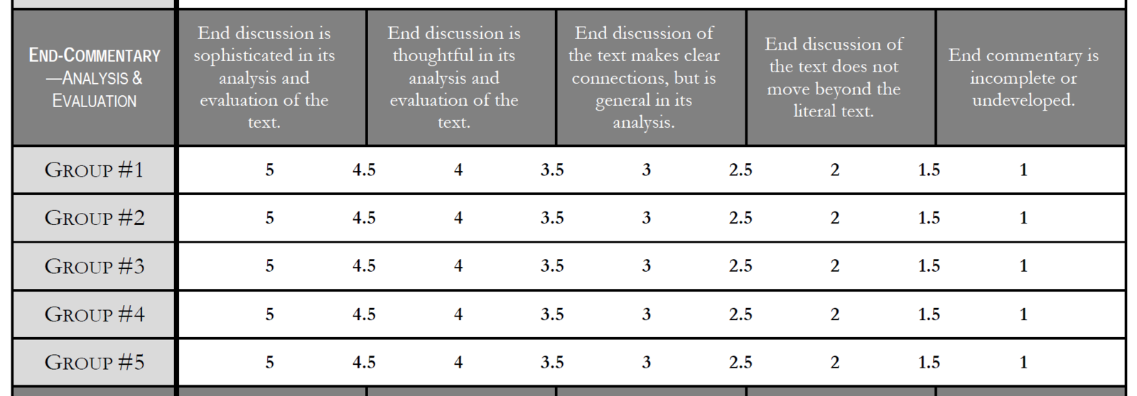 1. Review each end-commentary based on how it relates to / corresponds with the exemplars