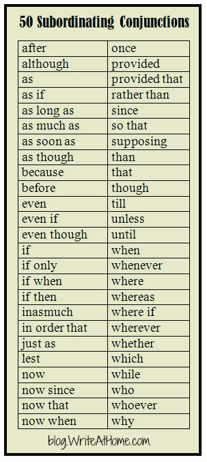 50 Subordinating Conjunctions