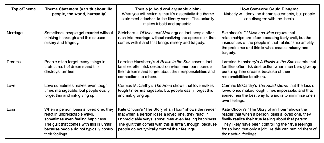 Writing a Good Theme Statement