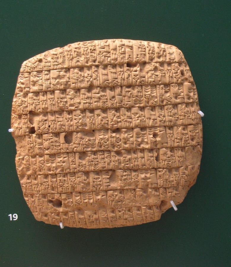 An account of barley rations written in Cuneiform on clay tablet, written in year 4 of King Urukagina (c. 2350 BCE).