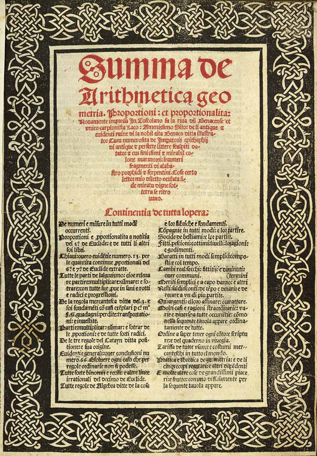 Luca Pacioli authors Summa de arithmetica geometria (1494), first known published work on double-entry bookkeeping.