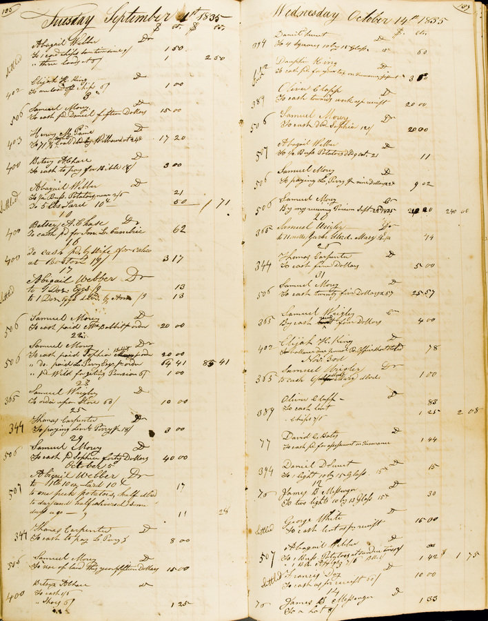 Double-entry account ledger and daybook of Laban Morey Wheaton (1835).