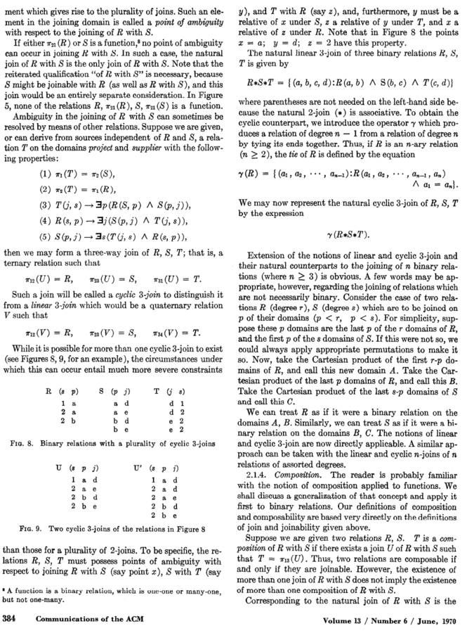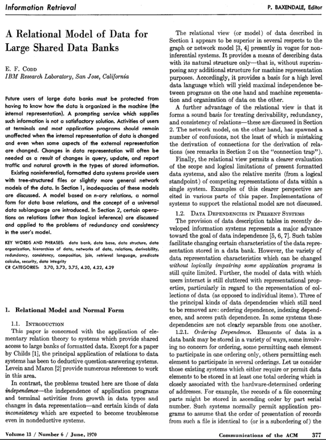 Edgar F. Codd proposes relational model of database management while at IBM Research (1970)