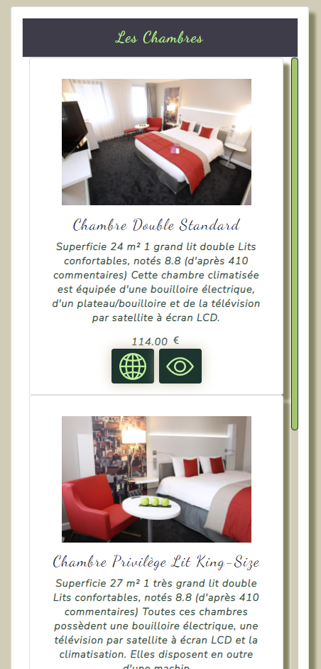 Le menu déroulant du milieu montre les chambres, il suffit de cliquer dessus pour aller directement sur la page de la chambre.
