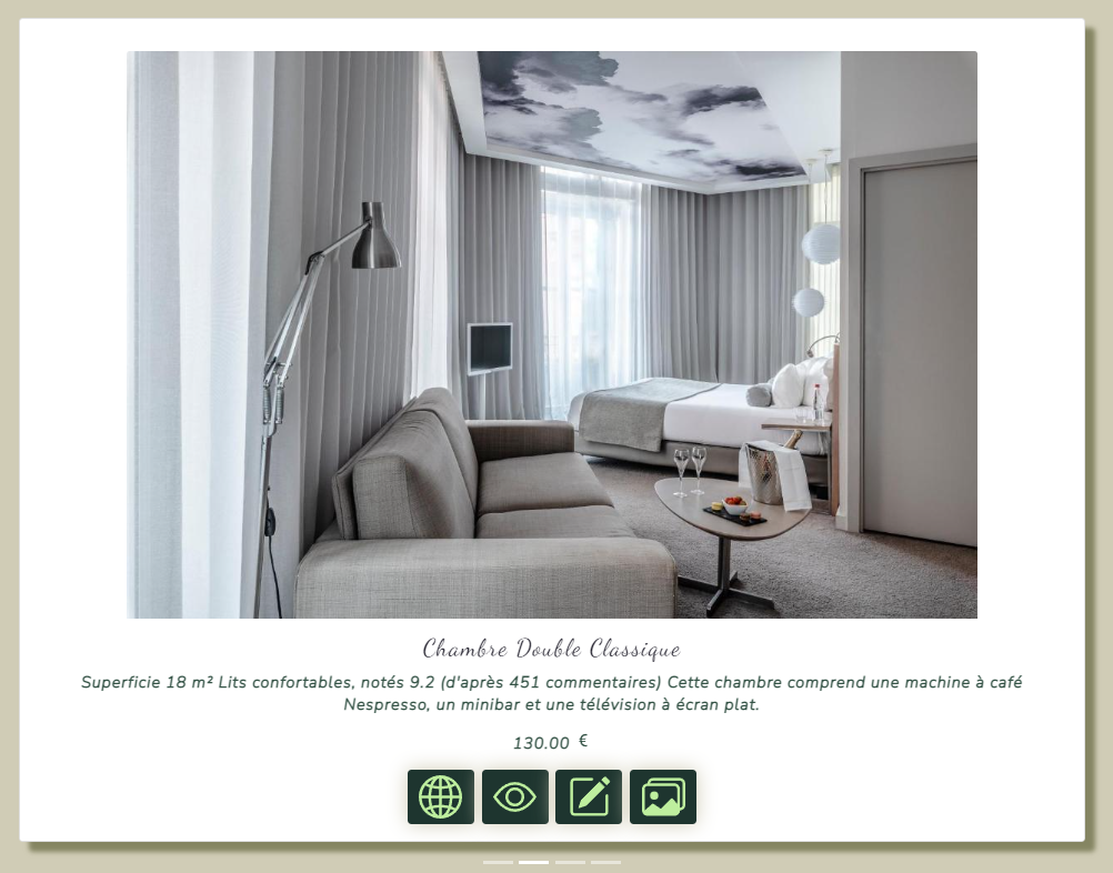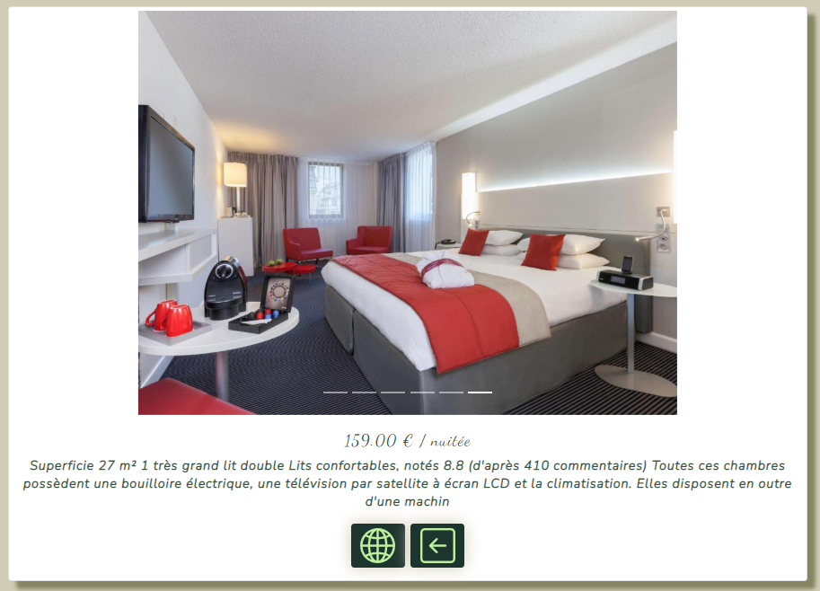 Le bouton "globe" permet d'aller sur le site Booking, partenaire d'Hypnos.